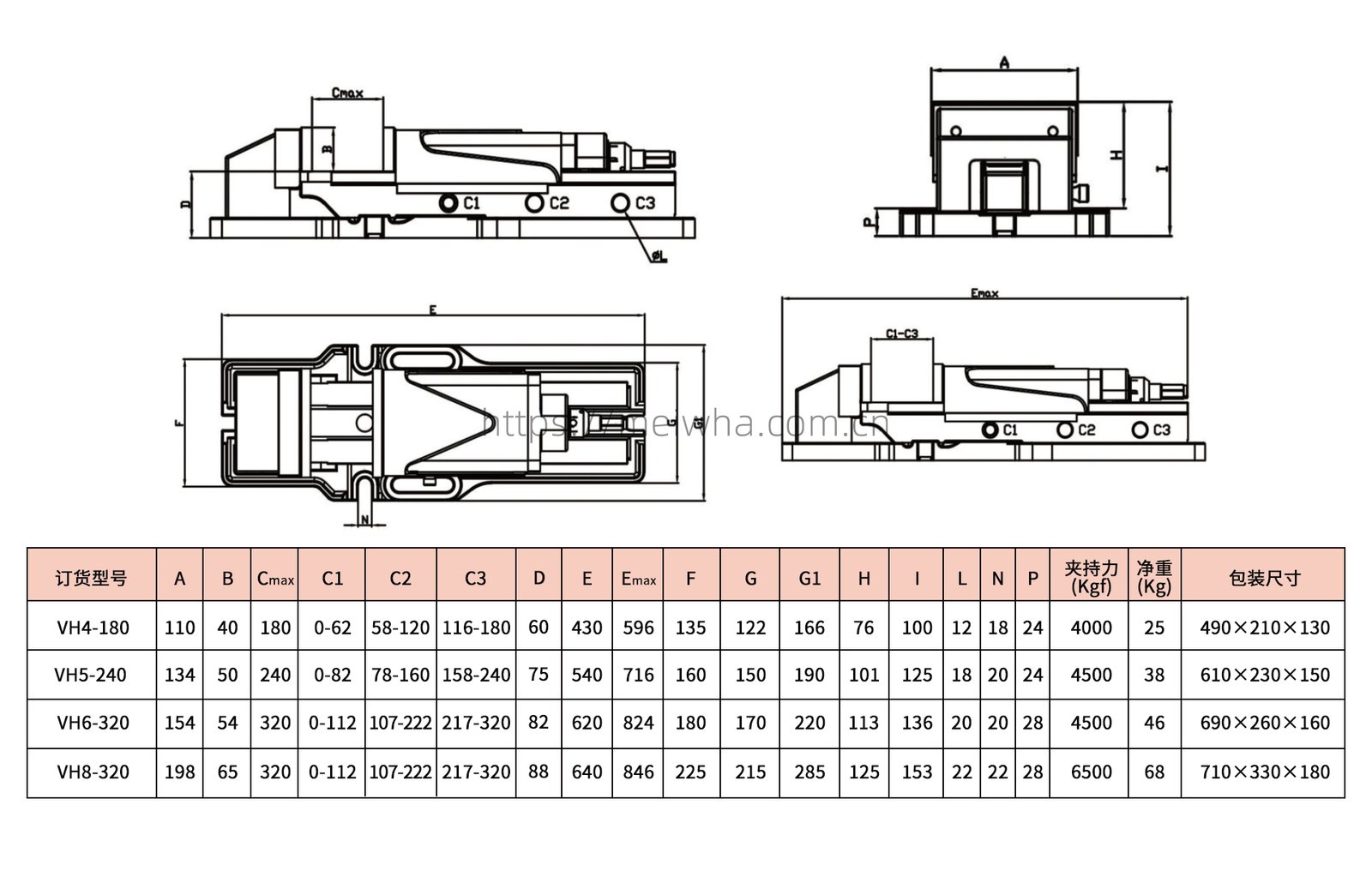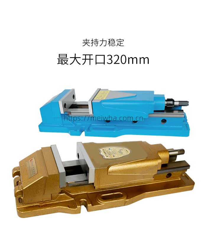 • 虎钳本体材料为高延展性,虎钳两侧滑块硬化热(HRC42°),保证高精度和高耐磨性,高抗拉强度。
