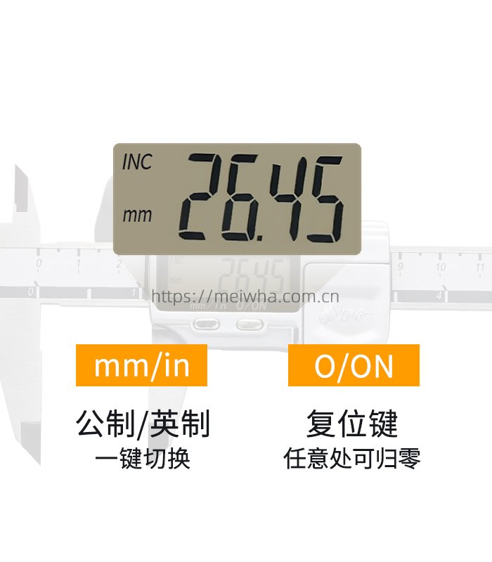一键归零/复位、公差预设提示、公制/英制快速切换等功能,可方便测量各种工件。