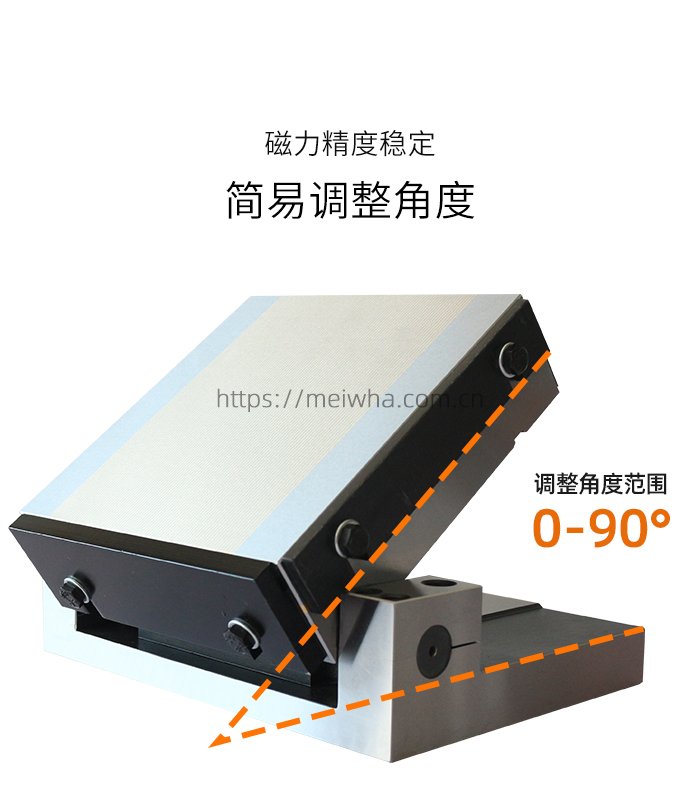 产品特征:其本质是一个可精密倾斜的强磁吸盘。通过底部正弦圆柱与标准量块(垫块)的配合,按公式