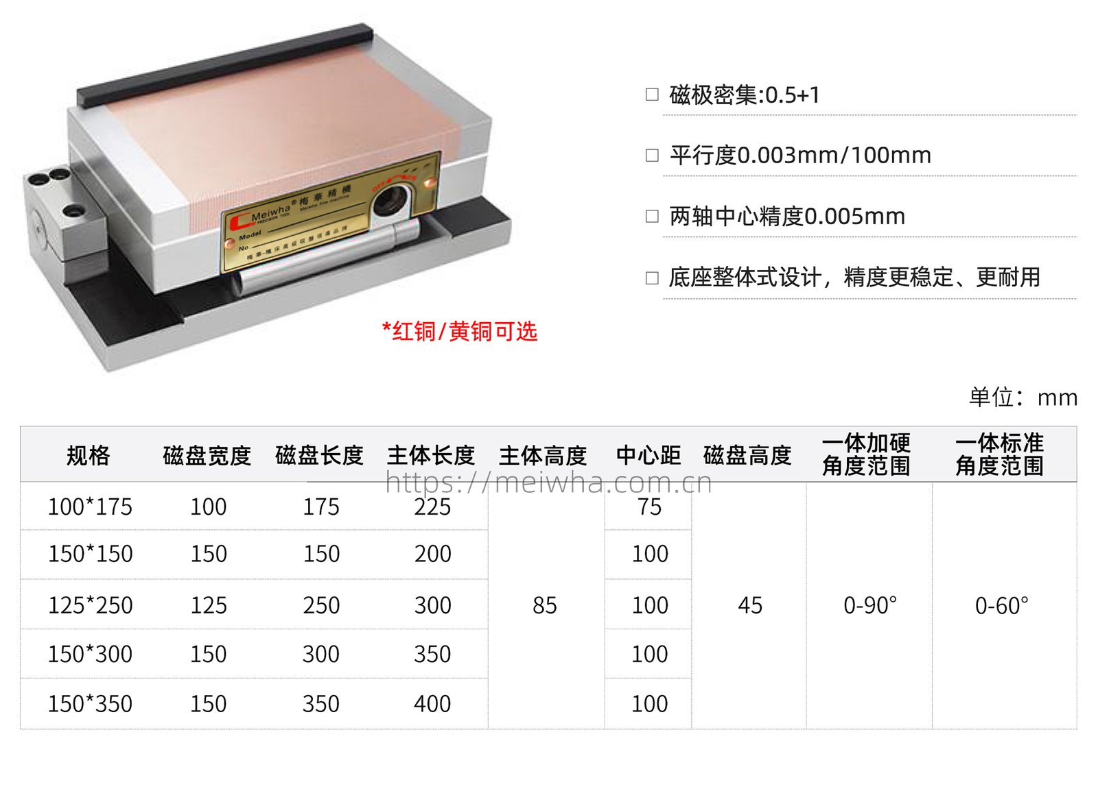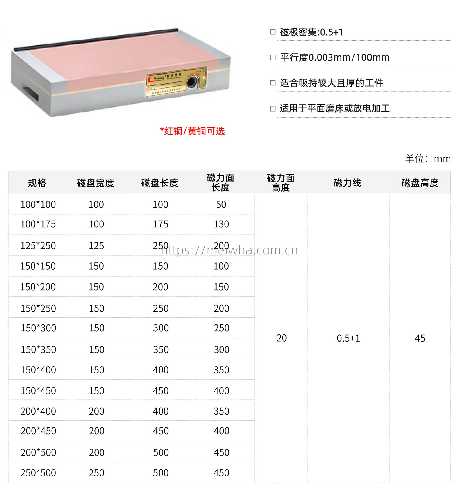 产品特征:核心优势在于密集、均匀、强大的磁力。细密的磁极排列能对小型、薄型工件产生均匀的吸附力,有效防止工件在加工中移位或变形。磁条提供强吸力,且退磁后剩磁小,方便工件取下。面板具有防水防腐蚀性能。